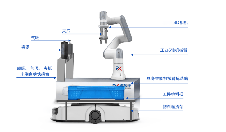 有了大模子和机械人产物,睿芯行又将目光投向了具身方案。2025年11月,由睿芯行取中力股份结合打制的工业具身挑撰机械人系列产物(包罗飞箱机械人、具身挑撰机械人、具身配送机械人)全球首发,并以“高效率、高精度、低成本”的手艺冲破为亮点,旨正在让具身智能从头定义智能仓储新形态。正在测试核心,记者看到,一台上半身人形、下半身轮式底盘的具身挑撰机械人正正在进行零件拣拔取配送工做。面临分歧外形、分歧大小的零件,机械人能够“伶俐”地进行识别,并按照该零件适合的挑撰体例,选择摆布两只机械手臂中的一只进行挑撰。据引见,该方案先由飞箱机械人用数秒时间将货架上肆意的料箱挪动到挑撰点,再通过具身挑撰机械人挑撰零件、具身配送机械人进行配送,以极高的效率完全代替人工完成从仓库挑撰到工位配送的全流程,笼盖从电商零售到智能制制的多元场景。此外,针对更复杂的挑撰场景,睿芯行又初创了可及时切换机械手臂结尾的具身智能挑撰坐,还给具身智能付与了“好眼神”:该方案通过视觉或消息交互,识别多种形态的零件,并及时选择分歧的机械手臂结尾施行器(如夹爪、气吸、磁吸、工致手等)进行高效抓取,完成无人化挑撰工做。