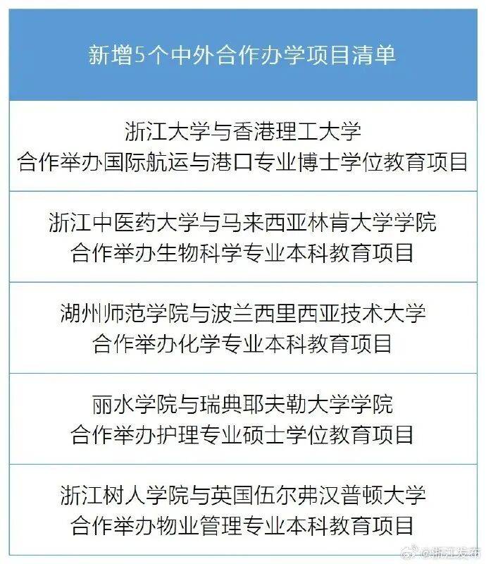 近日,教育部发布了2025年下半年获准的本科及以上条理中外合做办学机构和项目名单,此中,浙江共新增5个中外合做办学项目。具体名单↓。